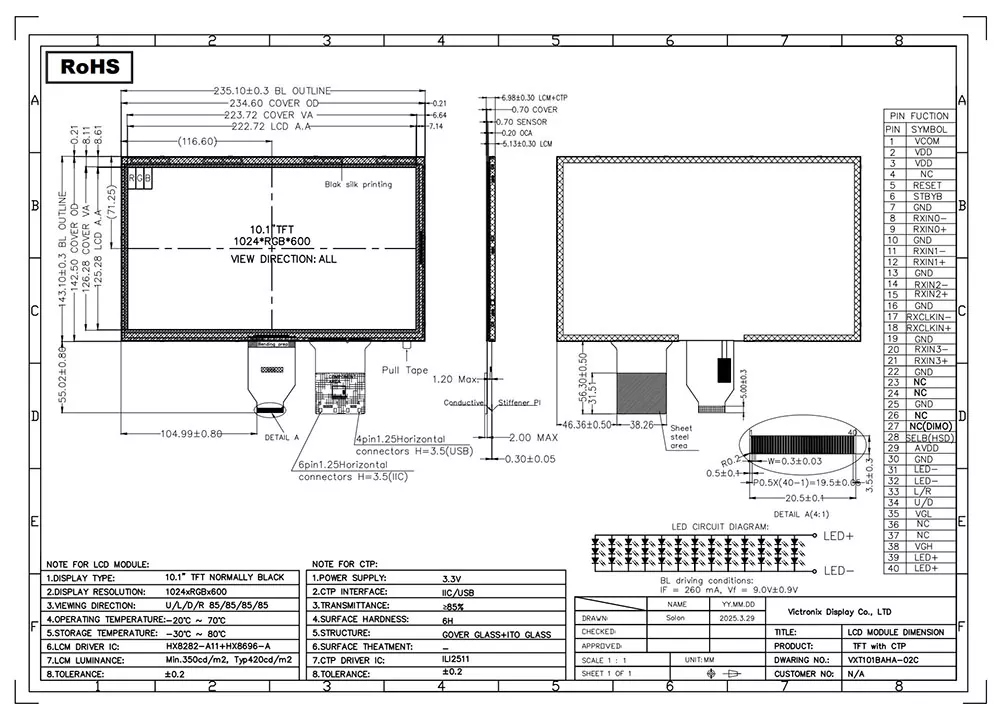 In aetate intelligentiae, in Tft moduli enables nobis ad praesens requiritur notitia uisum. Et qualis est TFT modulus habet discrimine impulsum in eius application. Quid commoda Vicronix 10.1 inch MXXIV × DC LVDs TFT Module cum CTP? In primo, CDXX eius CDXX / M² claritas, DCCC: I Contra Ratio, an LXXX-gradu viewing angulus in omnibus directiones, et LXXV% uniformitatem, vividi. Secundo, quod sustinet VI / VIII-bit LVDs interface cum Hx8282a11 + Hx8696a Controller et robust V-Point Capacitive Touch Panel cum Ili2511 CTP Controller. Praeterea, quod features a III × XIII-DUXERIT albus backlight cum lifespan de 30,000 ad 50,000 horas, cursus eius diu terminus usability in variis industriae applications. In addition, quod obsequitur cum ROHS signa et feliciter transit rigorous Reliability probat, comprehendo scelerisque inpulsa, humiditas et ESD praesidio usque ad 8kv aeris et 4kv contactus. Hoc productum operates efficiently in extrema temperaturis vndique a -20 ° C ad + LXX ° C et potest sustinere gravibus repono conditionibus ex -30 ° C ad LXXX ° C.