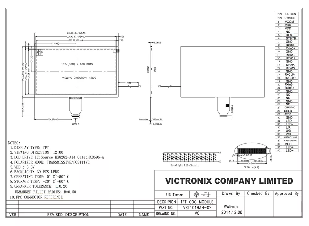 Vxt0101bah-II est a tft-lcd moduli. Est composito ex TFD-LCD Panel, Coegi IC, FPC, A retro lux unitas. 10.1 Display Area continet MXXIV x DC elementa potest display usque ad 16.7m colorum. Hoc productum secundum Rads environmental criterium