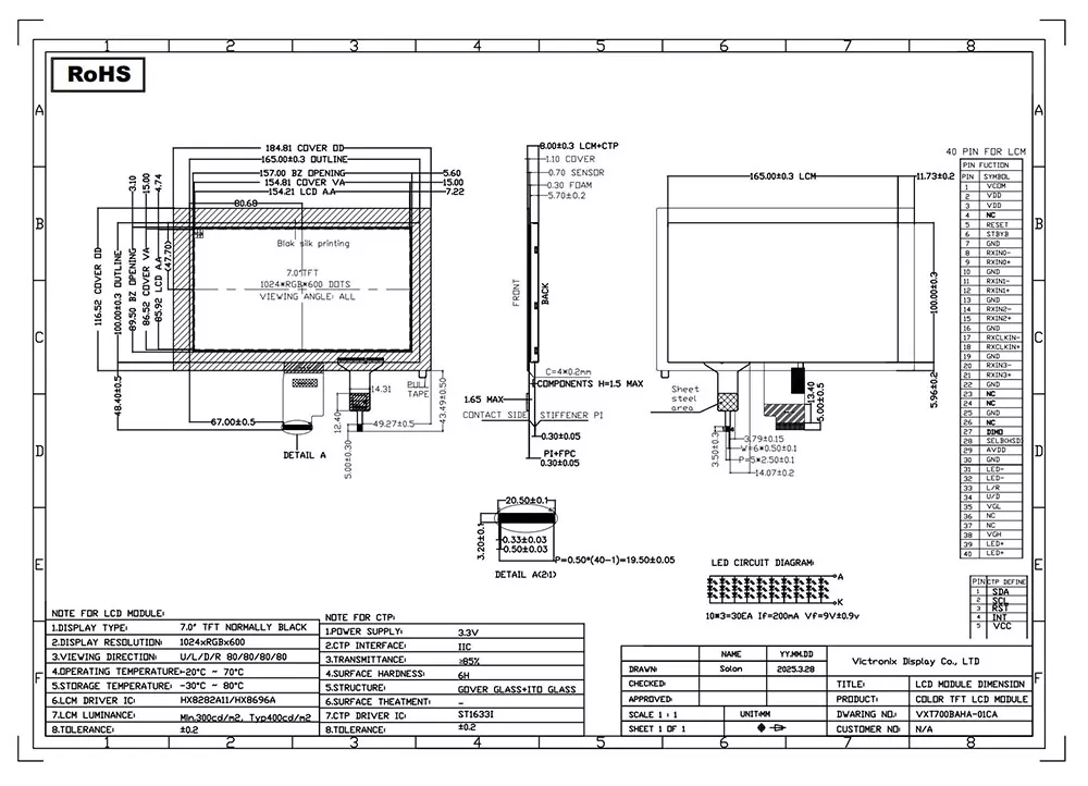 In aetate intelligentiae, in Tft moduli enables nobis ad praesens requiritur notitia uisum. Et qualis est TFT modulus habet discrimine impulsum in eius application. Quid enim commoda Vicronix VII inch MXXIV × DC LVDs IPS TFD LCD? In primo, CDXX eius CDXX / M² claritas, DCCC: I Contra Ratio, an LXXX-gradu viewing angulus in omnibus directiones, et LXXV% uniformitatem, vividi. Secundo, quod sustinet LVDs interface cum Hx8282a11 / Hx8696a Controller, A Capacitive Touch Panel St1633i Controller, et A III × X White Duced Backlight cum a vita 30,000 ad 50,000 in variis industriae applications. Praeterea obsequitur Rohs signa feliciter transit rigorous reliability probat, inter scelerisque inpulsa, humiditatem, et ESD praesidio usque 8kv aer et 4kv contactus. Hoc productum operates efficiently in extrema temperaturis vndique ex -20 ° C ad LXX ° c.